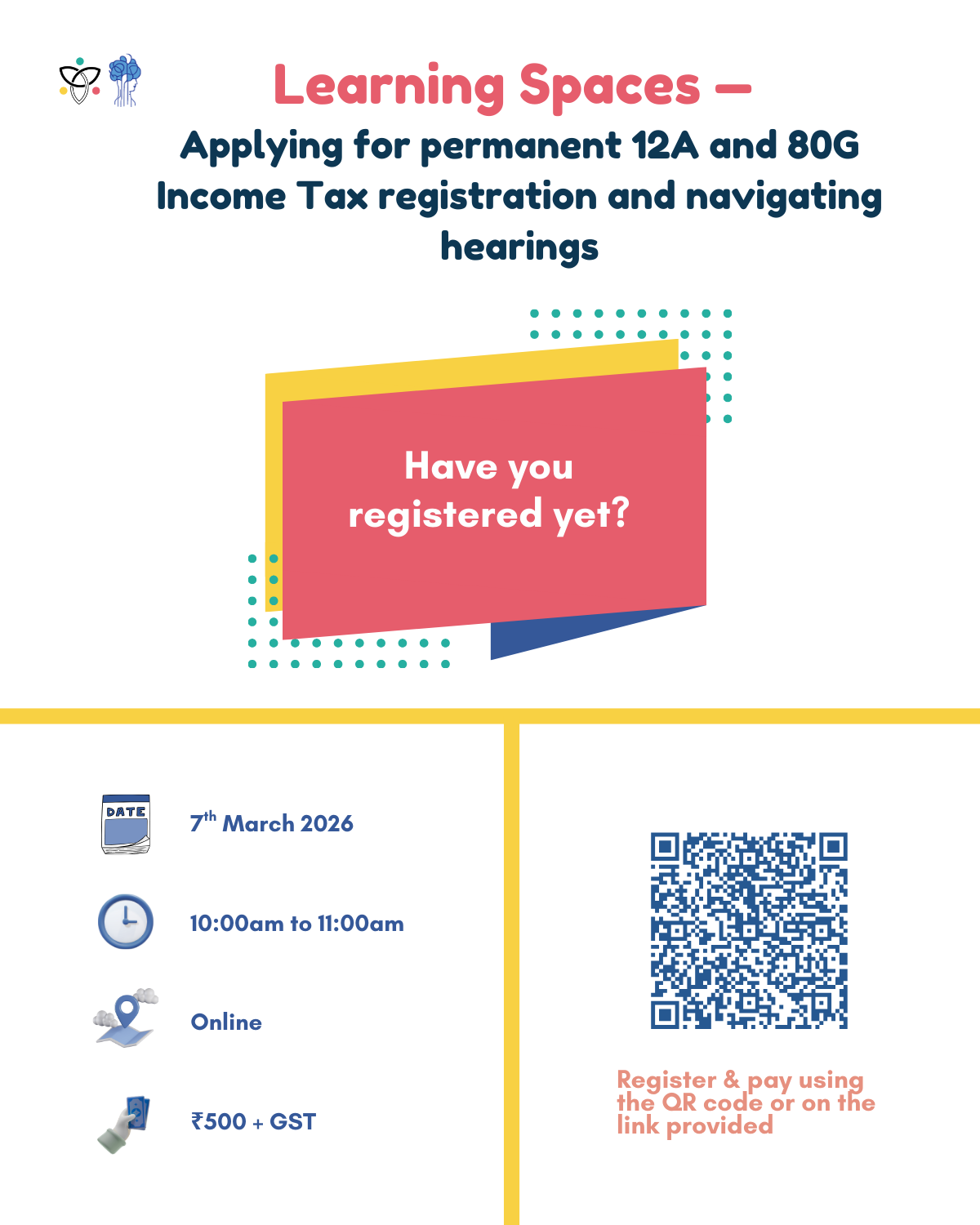 A quick reminder about Pactaโs upcoming session on navigating permanent 12A and 80G registration and Income Tax hearings.